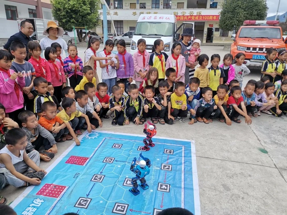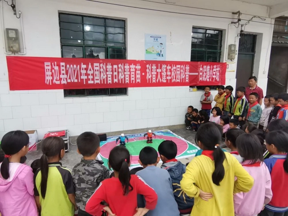 9月14日-18日,在屏边县2021年全国科普日期间,开展科普大篷车联合行动。 科普大篷车将以往只能在学校看到、听到、摸到的科技展品带进湾塘乡毛家小学、白云乡白泥塘小学、和平镇百福小学、新华乡河南角小学、新现镇洗马塘小学,让1450名学生足不出校就可以在“玩”的过程中学到课堂上、书本里所学不到的科学知识,亲身体会到科技的神奇。除了展出展品和3D展板以供学生操作观察外,“会跳舞的机器人”一下子就吸引了孩子们的注意力,它们一会儿举手、一会儿抬腿,动作整齐划一。广播体操、俯卧撑、动感舞蹈,完美展现各种表演的机器人赢得了同学们的热烈掌声,与机器人互动的孩子们也兴致勃勃扭动着身体,近距离享受着科技的魅力。VR眼镜、无人机、天文望远镜等互动参与性强的展项,更是让孩子们在动手、动脑的过程中体验科学的乐趣,一次又一次刷新学生的科学观,展场上惊叹声此起彼伏。