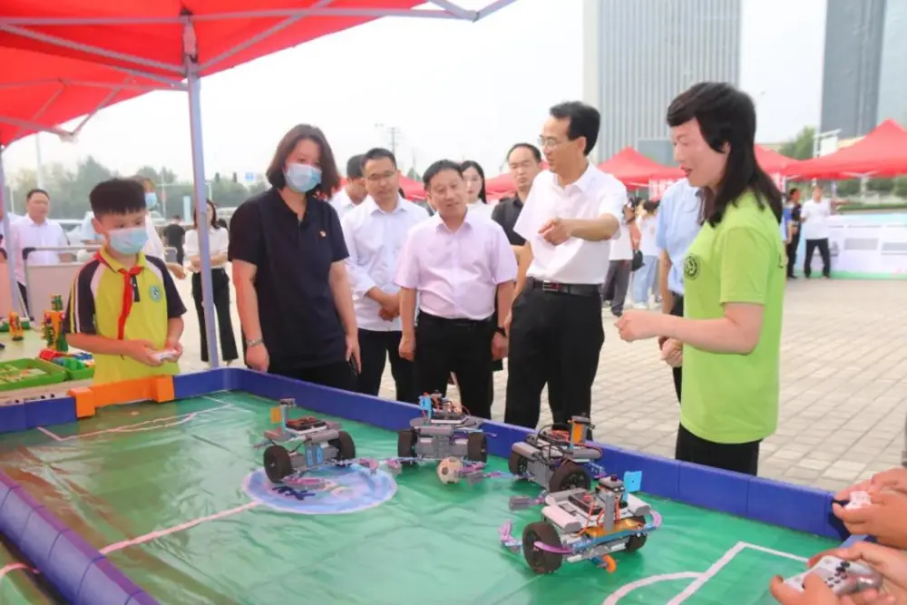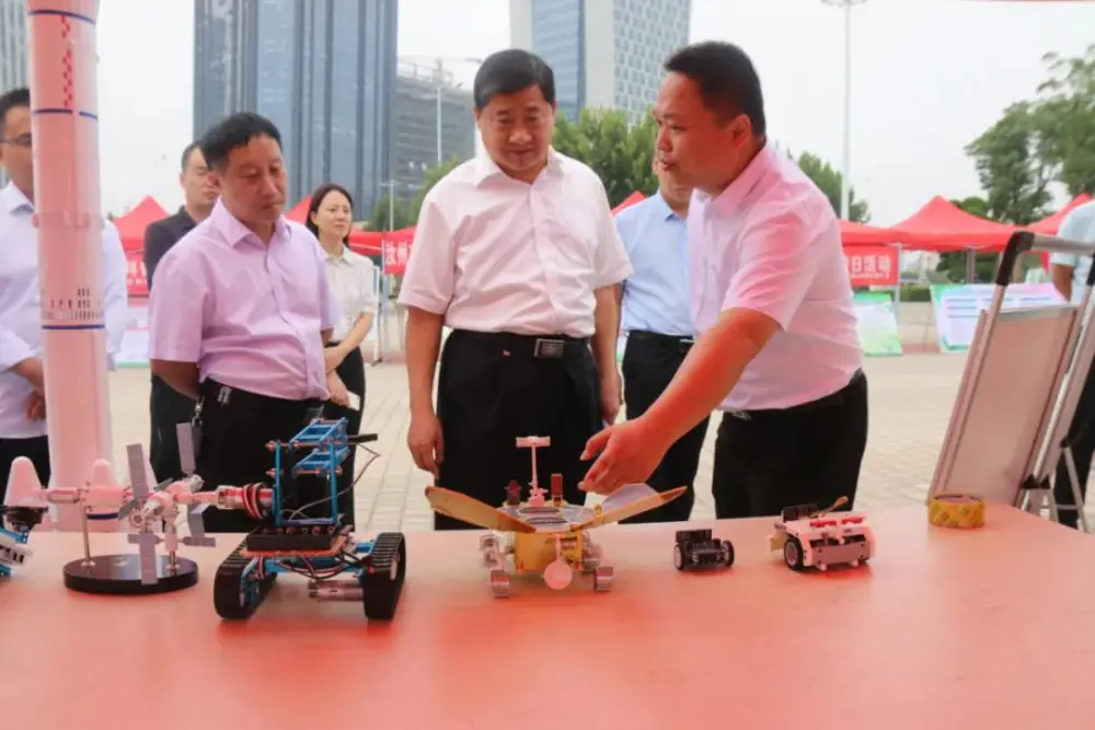 活动现场,陈淑雅听取了市科协关于汝州市2021年“全国科普日”活动开展情况的汇报,参观了各单位的科普宣传。在来青苑学校展区,观看机器人操作演示后,陈淑雅鼓励学生们多动脑、多动手,从小培养爱科学、学科学、用科学的能力。