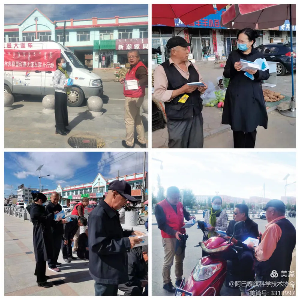 来自锡盟科技教育和创新服务中心刘国昌、王小平与阿巴嘎旗科协工作人员向社区居民发放科普读物400多册。向一些老人现场讲解健康文明的生活方式和科普知识,对群众的提问进行答疑解惑,提升群众科学文化素质。