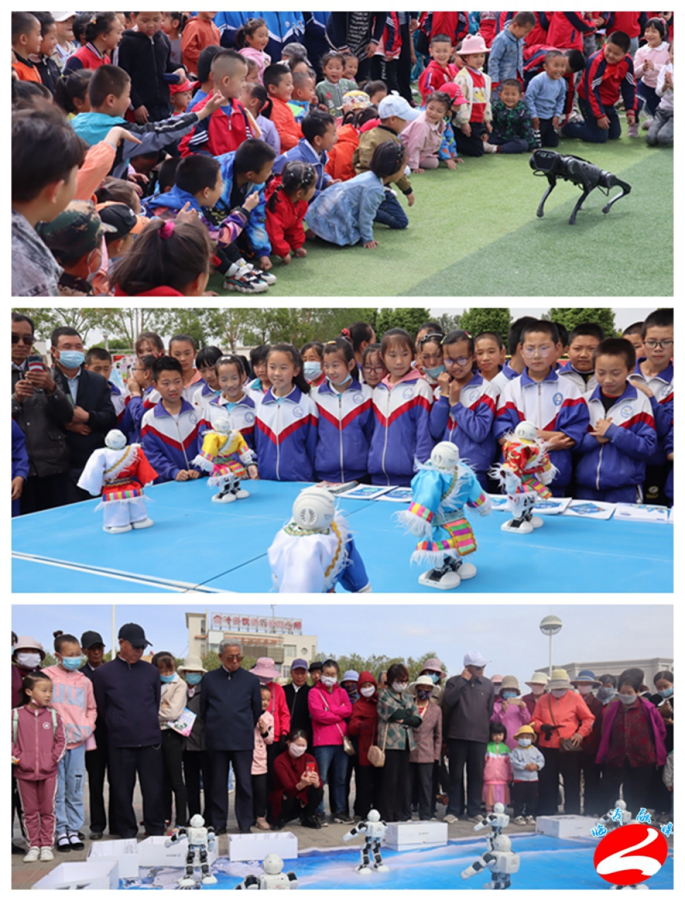 科普大篷车车队一路向西辗转到山丹县、临泽县、嘉峪关市、酒泉市、玉门市……操场上,孩子们追逐着机器狗;教室里,“科学表演秀”为学生们带来各种各样科学有趣的实验;红色展板前,师生们不约而同地驻足回想革命先烈的英勇故事……