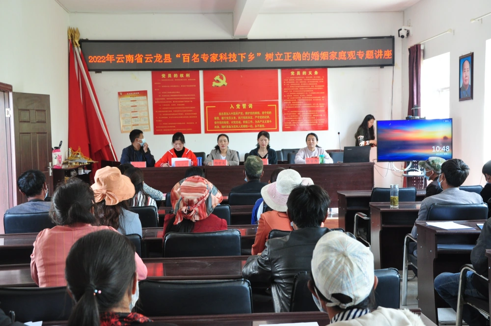 此次讲学活动由省、州、县科协共同组织开展,联合了县妇联、白石镇,邀请到大理州委党校王丽熔副教授为群众讲授主题为《树立正确的恋爱婚姻家庭观》的讲座。王老师以马克思主义婚姻家庭理论为基础,用生动有趣的语言,贴近生活的事例讲述了什么是正确的恋爱婚姻家庭观,为什么要遵守恋爱婚姻家庭道德以及如何培树良好家风,以家风促进乡风文明,助力乡村振兴战略在云龙的实施。通过听讲座,教师与群众互动,大家形成了共识,认为每一个人、每一个家庭都应该守法从德,家人之间要互尊互敬互爱,以忠诚、责任、理性的态度对待婚恋关系,坚守婚恋道德底线,这样才能处理好婚姻与家庭内外的人际关系和两性关系。家庭是社会的细胞,家风是民风的体现,在各族群众中推动践行以尊老爱幼、男女平等、夫妻和睦、勤俭持家、邻里互助为主要内容的家庭美德是乡村振兴的重要抓手。