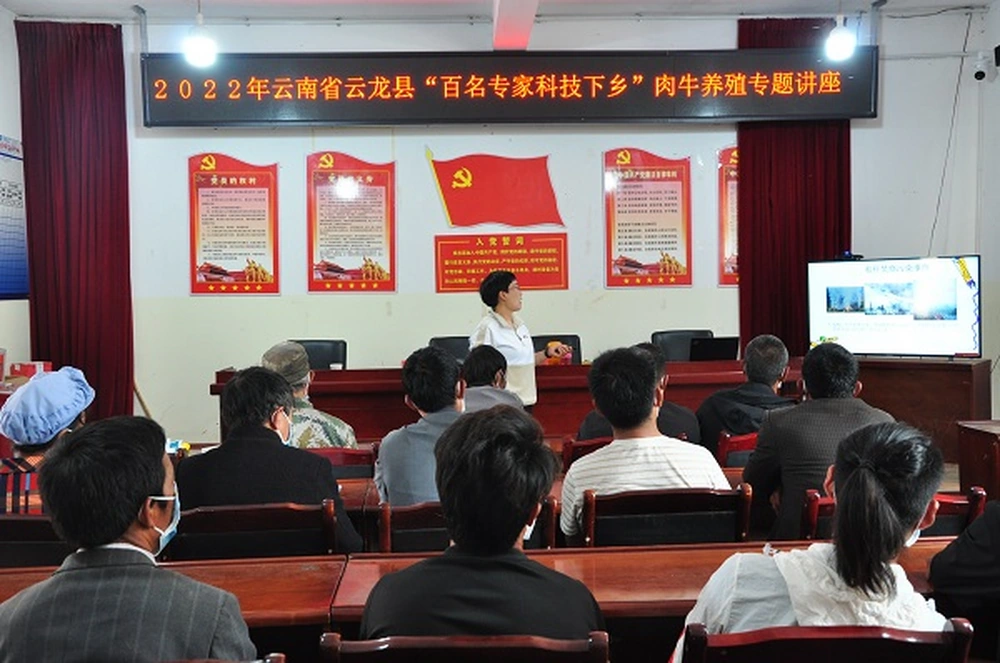 5月20日下午,云龙县科普大篷车开进白石镇顺荡村,开展2022年云南省云龙县“百名专家科技下乡”肉牛养殖专题培训。