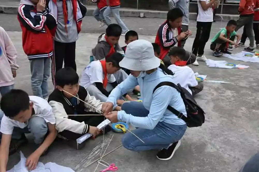 来自五年级的同学说道:“今天是他第一次看见科普大篷车和那么多的展品,他真的很开心,今天他最喜欢的就是机器人跳舞和火焰掌了,以前只是在电视上见过而今天却在学校里看见了并明白了它的原理。” 而另一边的机器人跳舞和展品展具体验也同样受到了大家的欢迎,同学们在操场上跑来跑去的看展品,都觉得很开心。来自曲靖市爱尔眼科的三位医生也耐心的为同学们做了免费的眼睛检查。风筝制作同样深受同学们的欢迎,六年级的同学拿着自己的风筝套材开始制作风筝,从绑线、扎骨架、蒙面、栓提线等一步一步的进行者,做好后,同学们便在操场上放飞自己的风筝。