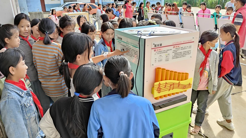 2022年9月14日上午,与县教体局组成教育科普小分队,积极深入牛角寨镇果期小学,开展以“喜迎二十大˙科普进校园”为主题的教育科普宣传活动,并与广大师生开展互动。同志们认真聆听讲解员介绍并演示了部分科普大篷车展品,对科普大篷车展品产生了深厚的兴趣,每个人都争先体验、动手操作,极大的激发了同学们学科学、爱科学、用科学的热情。