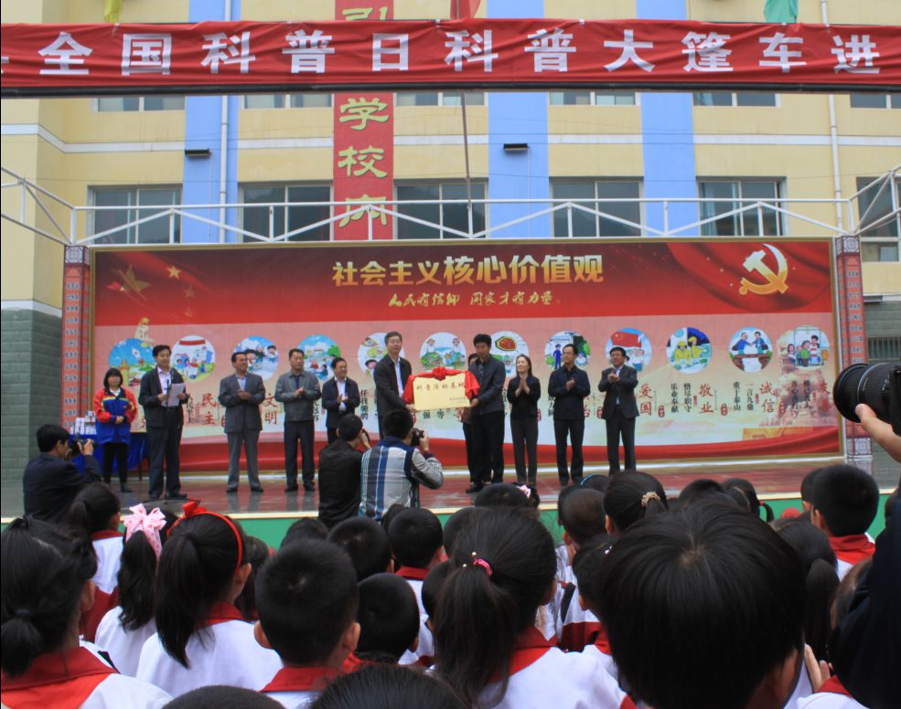 在“全国科普日”即将到来之际,9月17日上午,陕西科技馆校外“科普活动基地”授牌仪式在吴起宜兴希望学校举行,陕西科技馆馆长王晓东、延安市科协主席赵燕、副主席郭俊明、延安科技馆馆长郭齐顺及学校领导出席了授牌仪式。仪式上我馆还给吴起宜兴希望学校赠送科普展品15件、立体展板24块、科普图书300册。
