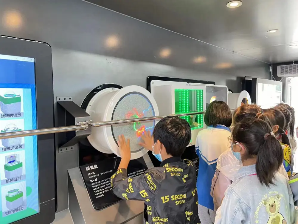 本次活动陕西科技馆派出新Ⅰ型科普大篷车,为同学们带来了全新的科普展品。“音乐特斯拉”“声驻波”“旋转的银蛋”等展品引得同学们纷纷驻足体验。同学们看着从未见过的新奇科普展品,时而锁眉、时而大笑,在体验中汲取科学营养,感悟科学魅力。