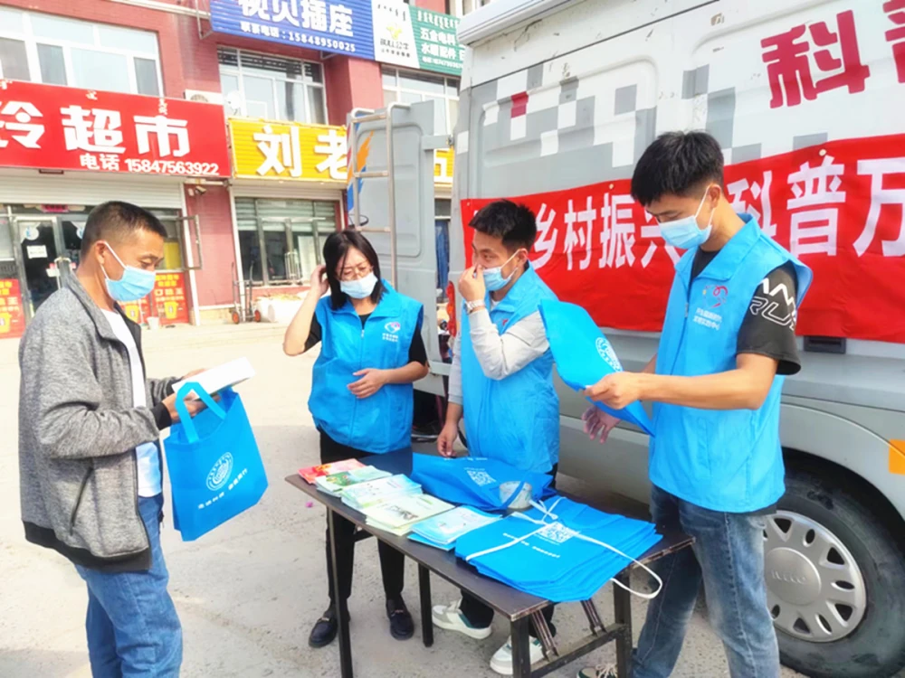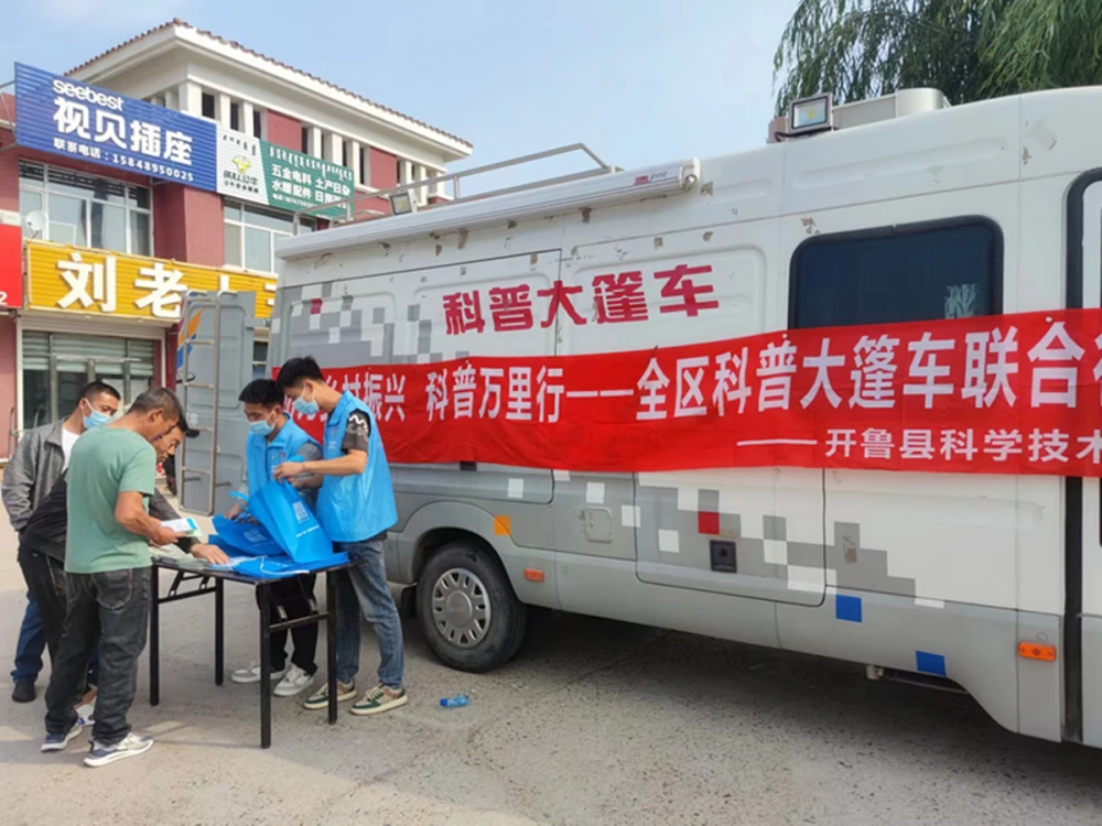 科普大篷车来到集贸市场,科普志愿者们利用人员聚集的时间以通俗易懂的语言、喜闻乐见的形式向村民宣传科普生活小常识、科技种植养殖知识、疫情防控注意事项、科普自然灾害应对常识、为群众发放印有科协标志的科普布袋、科普读本等宣传品。让科技知识深入人心,提高了群众的满意度。