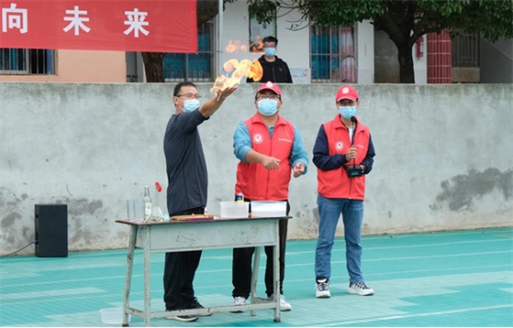 接下来我们的科技志愿者为我们所有人送上了一场不一样的科技实验秀,“老师您的手被火点燃了,您痛吗?”一个小朋友好奇的问到。“我们不知道痛啊!因为我们有东西在保护着我的手,这些科学知识随着你们知识的增长你们自然就会明白的,你们一定要好好读书好不好”我们的科技志愿者耐心的回答道。