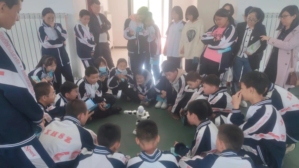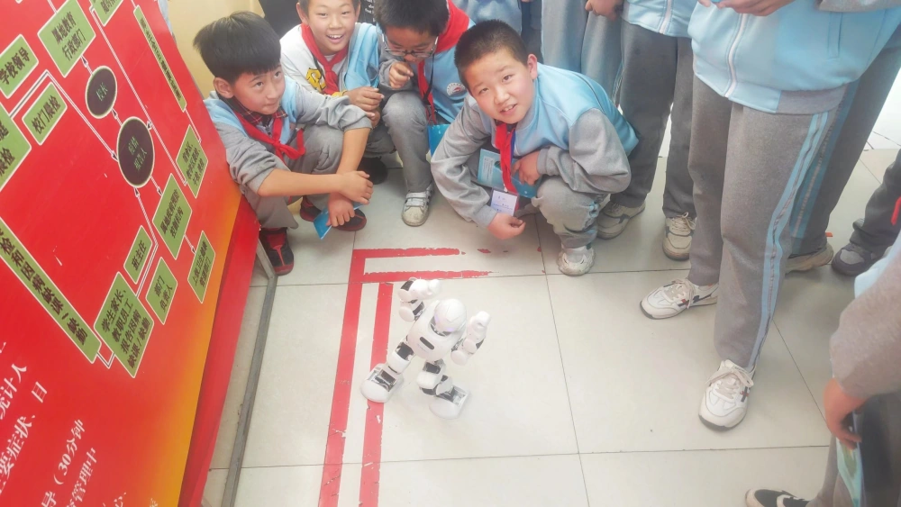 科普大篷车除了展出科普展具供学生操作体验外,还展出了“会跳舞的机器人”,伴随着音乐翩翩起舞的机器人,让孩子们开怀大笑。