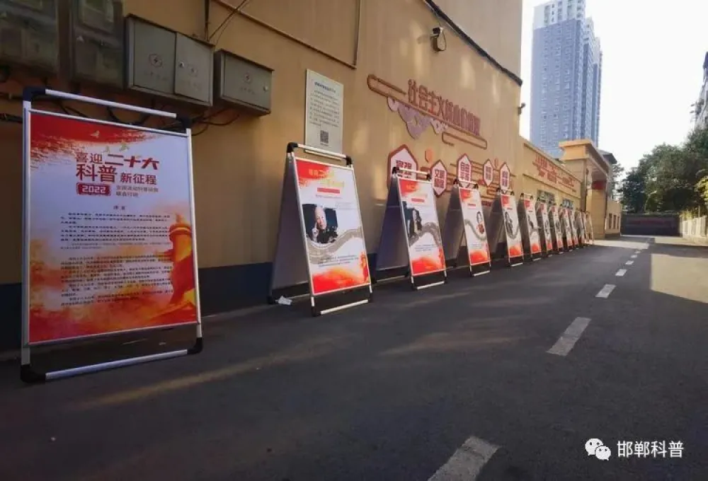 9月28日上午,正值国庆节即将到来之际,由中国科技馆发起制作的“喜迎二十大,科普新征程”全国流动科普设施巡展系列展板抵达邯郸市,并在邯郸市科协科普长廊前进行了首次安装布展。