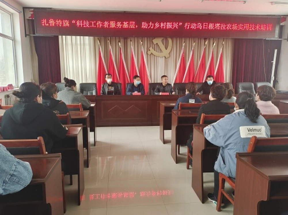 市旗两级科普专家团成员、旗科协工作人员、科技工作者、志愿者一行9人为前来的26名农牧民提供了科技服务,此次科普传播行活动以授课、科技咨询和发放科普图书的形式开展。此次活动邀请了通辽市科普专家团成员、扎鲁特旗黄花山综合保障和技术推广中心副主任、高级兽医师邵志勇和旗科普专家团成员、旗农业推广技术推广中心副主任孙玉堂为乌日根塔拉农场的农牧民进行了实用技术讲座。