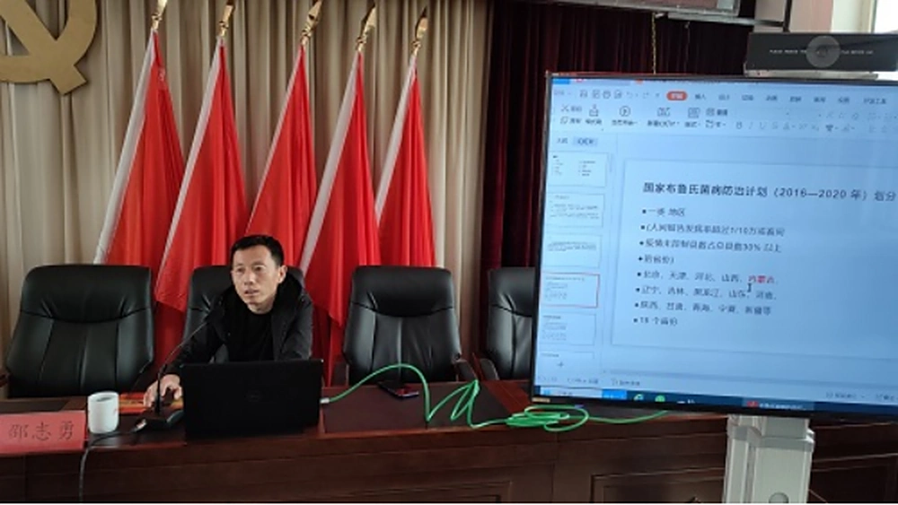 邵志勇老师讲授“布鲁氏菌病的流行与防控”,据了解,布鲁氏菌病是一种较为常见的牛羊等动物源传染疾病,该种病菌传播范围广,感染后具有极强的传染速度,对牛羊养殖业经济效益具有严重威胁,布鲁氏菌病属于人畜共患疾病,不仅影响牛、羊等动物的养殖,同时也会对人体健康造成一定威胁,通过老师的讲解,使前来参训的农牧民加深了对该病的认知,加强了对该种疾病的防控防护意识。