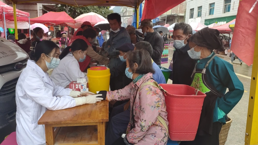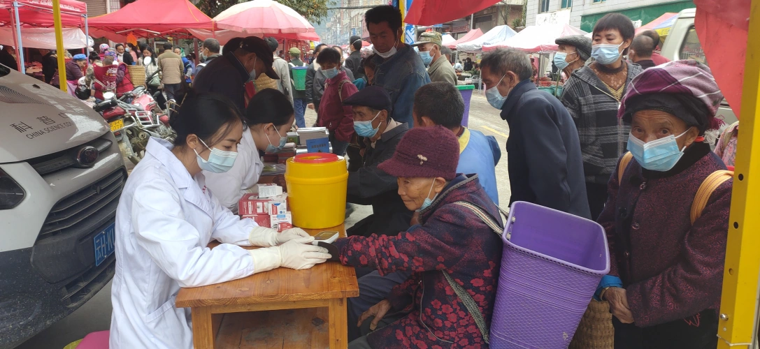 活动现场,科普志愿者向过往的老年人发放老年人保健知识、疾病防治、老年人合理膳食等健康科普知识宣传资料,耐心地向老年人讲解健康养生、健康饮食,健康心态、规律起居、科学锻炼、用药常识等方面科普知识和注意事项。还邀请了夹寒箐镇卫生院的医生在现场为老年人免费义诊,量血压、测血糖,解答老年人的健康问题。利用科普大篷车播放“中老年人如何预防帕金森病、老年人睡眠质量差用药时注意什么、老年人如何科学补钙、老年人如何合理膳食、老年人如何科学运动”等科普知识视频资料。