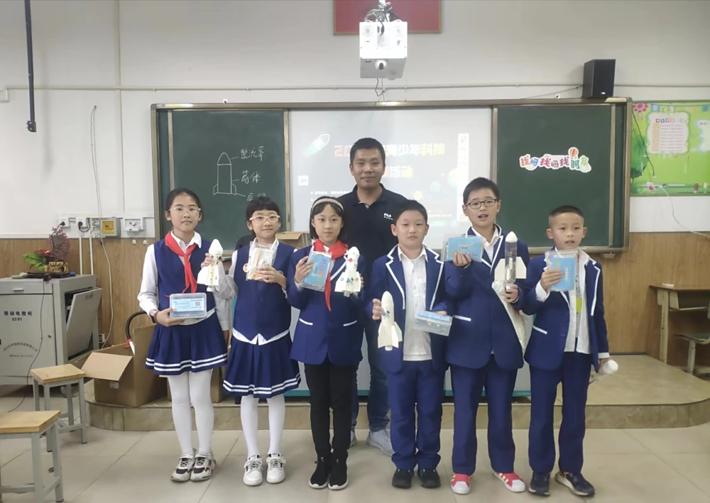 期间,还开展了由德阳市青少青少年科技教育协会主办的“圆航空梦想·逐绿色未来”青少年科技创新实践活动,由正高级教师姜全智老师给同学们讲授了一堂生动的科学课,并结合未成年人思想道德建设工作分享相关知识。由德阳市知唯青少年中心带领同学们动手制作了火箭课程,既学习了航空航天知识,又更体验了小火箭升空的乐趣,最后为优秀小组的同学颁发了奖品。