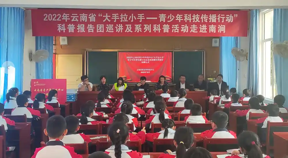 2022年10月25日-28日云南省青少年科技中心、大理州科协、南涧县科协联合在南涧县城及南涧县乐秋乡开展2022年云南省“大手拉小手—青少年科技传播行动”科普报告团巡讲及系列科普活动走进南涧。