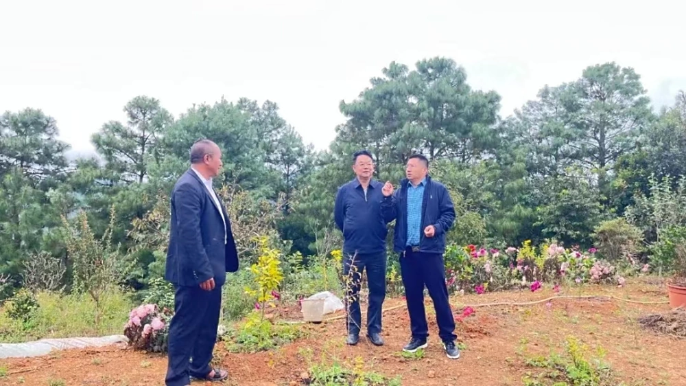 在乐秋乡麻栗村,鲁斌一行对省科协2022年定点帮扶项目进行实地考察