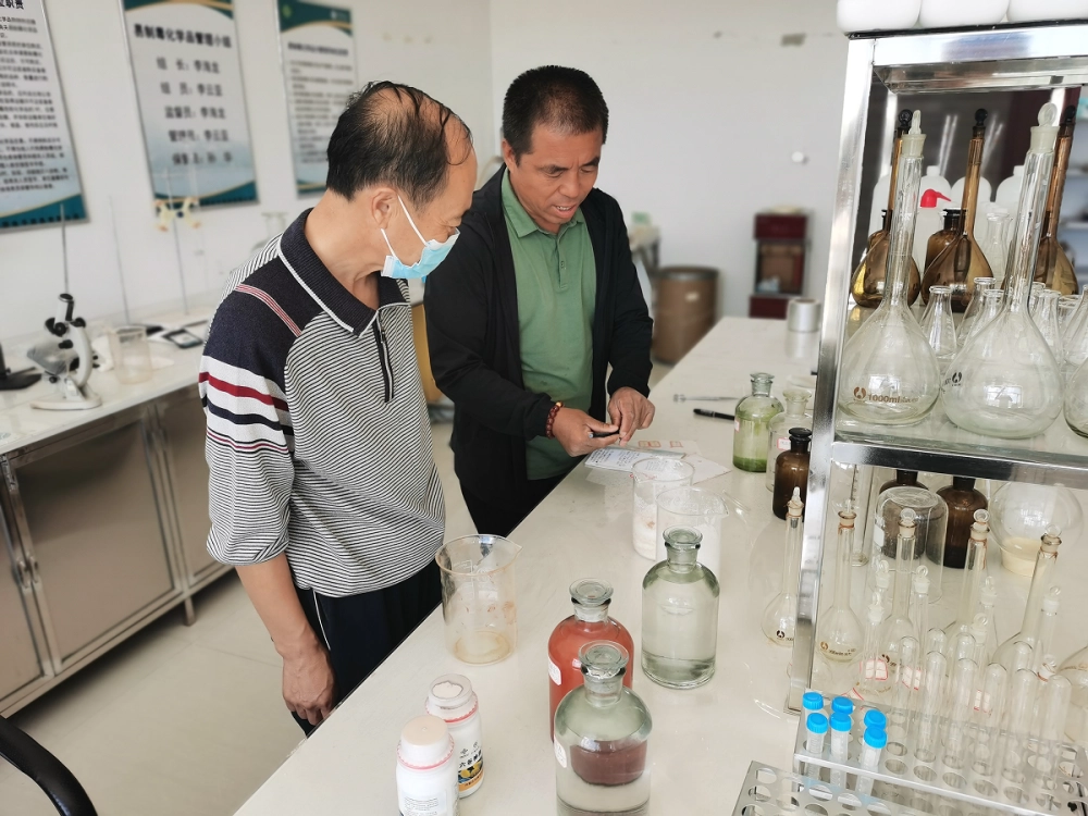 科普大篷车从田间地头又开往旗工业园区,在那里,调研组参观了六谷神液元素液体肥生产车间和实验室,了解产品和经营情况、生产线流程及成品,在了解到冲施六谷神液液体肥跟传统种植施肥相比节省化肥施用量50%左右、效果比传统化肥效果提高50%左右等成果后,调研组对此项实验给予充分肯定,鼓励其积极推广应用。