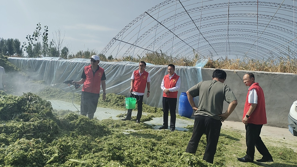 党组书记李忠文、主席金城便邀请旗科普讲师团团长特格希一同前往乌日根塔拉农场,深入田间地头、农场棚舍进行现场指导、推广宣传制作全株玉米青贮技术。
