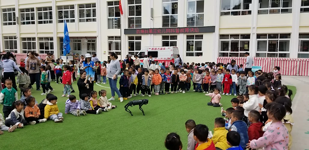 2022年11月15日,西畴县科协、县教体局联合进西畴县第三幼儿园开展科普大篷车进校园活动。活动结合孩子们实际,准备了虚拟现实VR体验、表演机器人(智能佳)、四足机器人(机器狗)、海底生物3D科普展板让幼儿园小朋友现场体验。幼儿园小朋友们在老师的带领下,分年级、分班次参与体验活动。本次科普活动,为594名幼儿体供了学习科学的机会,让幼儿主动参与其中,在活动中观察、感受、想象,启发了幼儿对科普活动的兴趣。