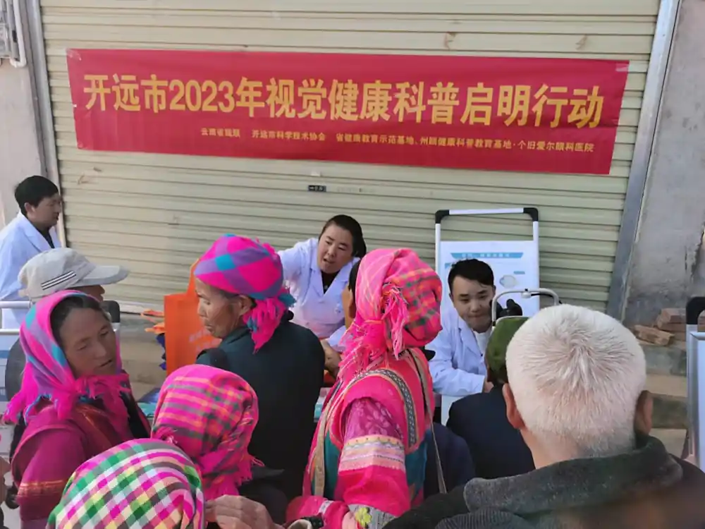 为普及眼部疾病防治知识,增强全民爱眼护眼意识,为群众提供贴心的健康服务,2月6日,开远市科协、碑格乡科协联合个旧爱尔眼科医院在乡农贸市场开展2023年“视觉健康科普启明行动”志愿服务活动。