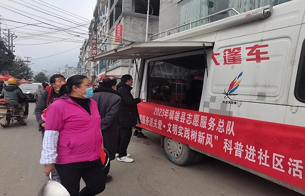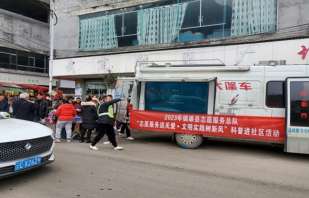 瑟瑟冬日,暖暖温情。根据镇雄县文明办《关于2023年元旦春节期间开展文明实践志愿服务活动的通知》要求 ,1月13日,县科协组织科技志愿服务小分队利用科普大篷车深入赤水源镇、坪上镇、牛场镇、五德镇等地进农村进社区,在乡村集镇开展2023年镇雄县新时代“志愿服务送关爱·文明实践树新风”科普活动,以实际行动弘扬志愿精神,为严寒的冷冬增添了一抹暖意,用志愿服务关爱行动催开新春科普之花。本次活动覆盖面达12000余人次。