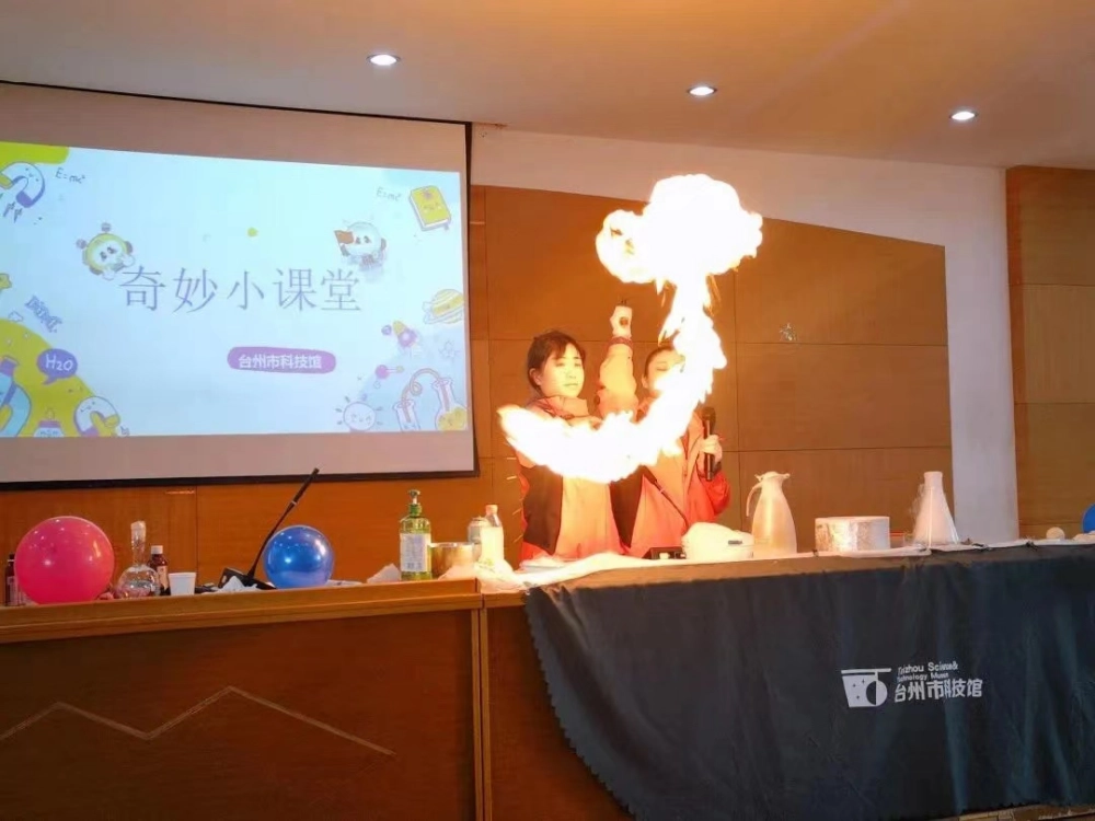 此外,在阶梯教室还开展了“科普漂流瓶”活动。科普老师做了许多有趣的科学实验,如气球保卫战、惊奇化学秀等,科学实验如有神奇的魔力让同学们目不转睛,飞舞的气球、升腾的火焰……科学之旅就此展开。