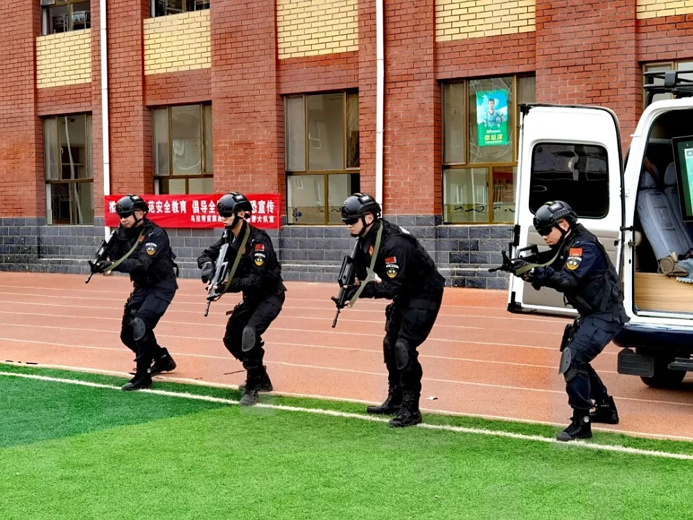 反恐防暴,全民参与,平安建设,人人有责。2023年2月27日,乌拉特前旗科协联合公安局反击恐怖和特巡警大队来到乌拉特前旗竹林学校开展反恐防暴宣传教育活动。