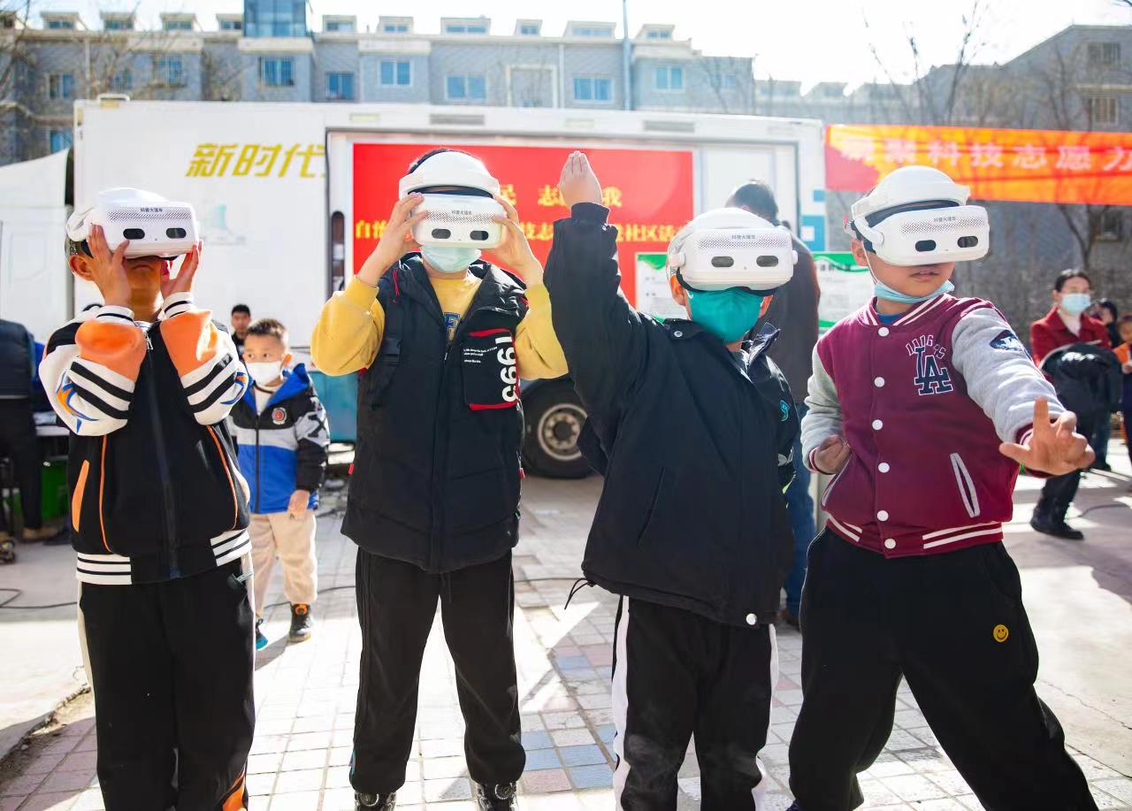科普大篷车的众多科普展品很快吸引了孩子们的注意,他们纷纷加入到科普展品互动体验中,带上VR眼镜感受星际世界;机器人表演让围观的居民大开眼界;志愿者们在服务点对老年人进行“一对一”智能手机应用科普服务,帮助老年人学习运用智能手机,解决老年人手机使用难题;家长和孩子们在动手体验中科技乐趣,激发科学兴趣。