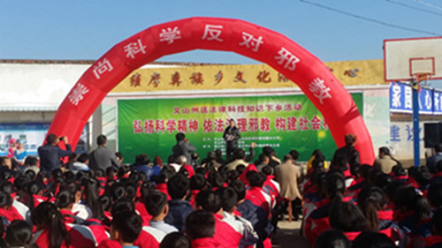 这次活动由州委宣传部牵头,州人民政府防范和处理邪教问题办公室与州科协联合主办,砚山县人民政府防范和处理邪教问题办公室、砚山县科协、砚山县维摩彝族乡人民政府承办,活动在维摩乡便民服务中心、文化活动中心举行,参与活动的有相关部门科技人员、维摩中学学生、炭房社区部分群众等共200余人。(文山州科协 隆翔宇编稿)