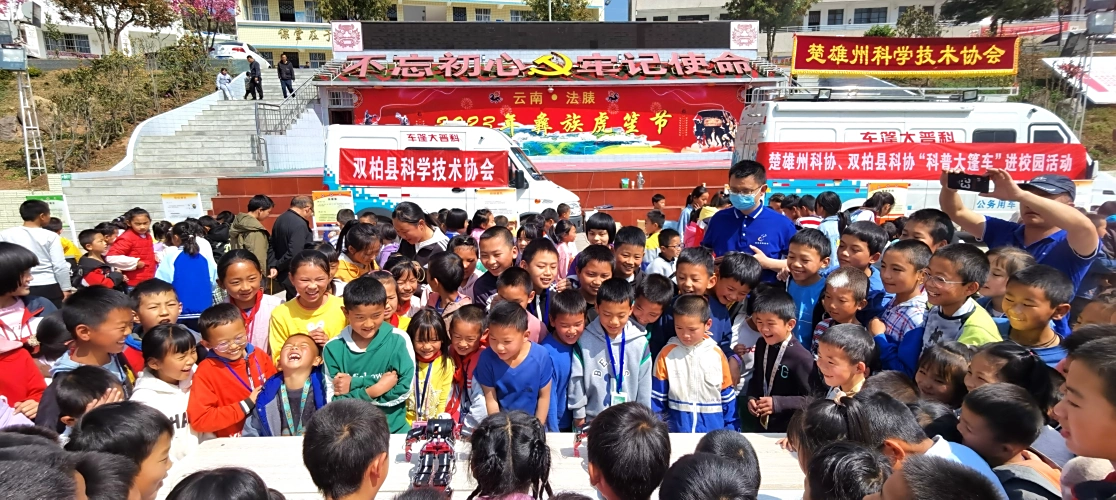 为充分发挥科普大篷车资源作用,3月16日下午,在2023年楚雄州文化科技卫生“三下乡”集中示范活动开展期间,楚雄州科协联合双柏县科协,以习近平新时代中国特色社会主义思想为指导,围绕学习宣传贯彻党的二十大精神主线,到双柏县法脿中心学校开展科普大篷车联合展教活动。