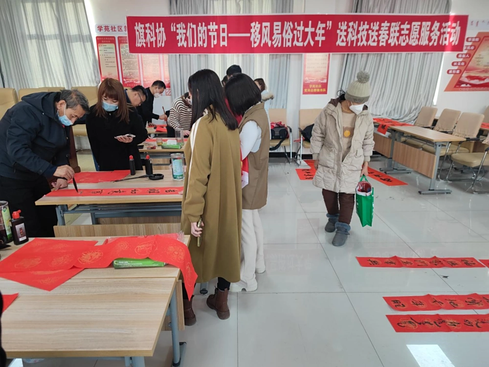 1月12日,旗科普大篷车来到鲁北街道学苑社区开展“我们的节日—移风易俗过大年”送科技送春联志愿服务活动。