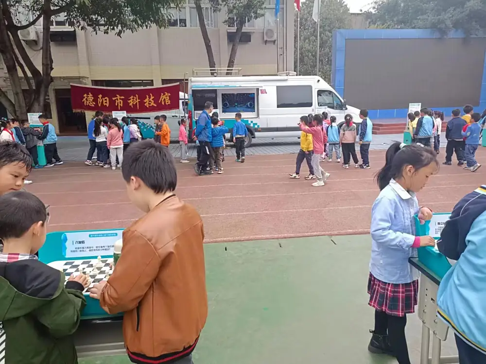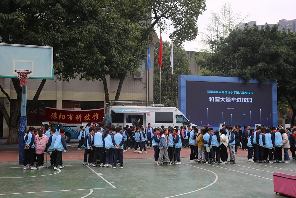 2023年3月30日上午,德阳市科技馆科普大篷车开进了德阳市东电外国语小学校园。分别为该校本部和成师德高校区的师生带来了丰富、有趣、益智的展出项目。