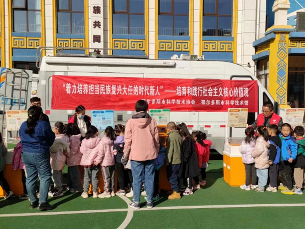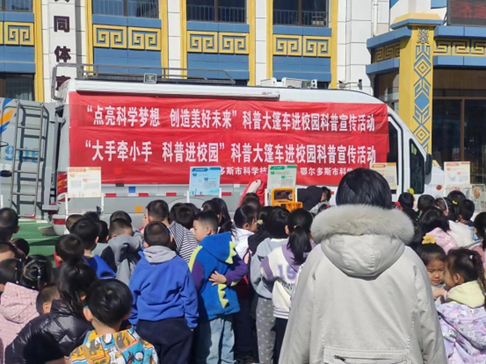 2023年3月15日下午,鄂尔多斯市科学技术馆科普大篷车走进伊旗蒙古族第二幼儿园,开展“点亮科学梦想 创造美好未来”及“着力培养担当民族复兴大任的时代新人”——培育和践行社会主义核心价值观科普大篷车进校园科普宣传活动,全园800多名师生前来参观,发放科普宣传册、科普宣传品共400多份。