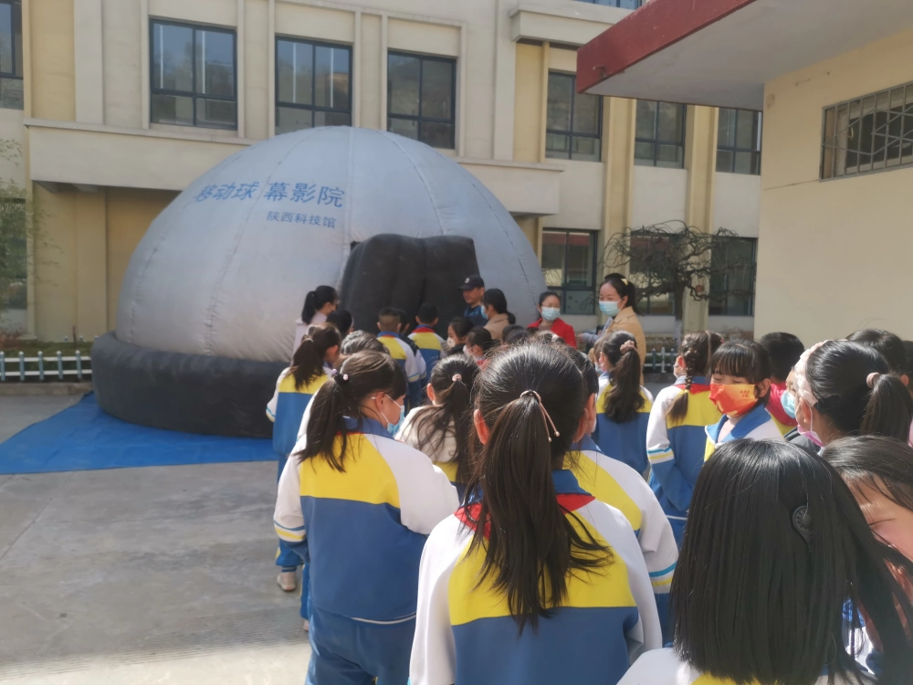 陕西科技馆新Ⅰ型、Ⅱ型科普大篷车带去了车载展品、球幕影院,以及科学实验、机器人和无人机表演等展项。丰富的科普展项吸引了同学们好奇的目光。同学们热情高涨,争先恐后地体验车载展品,亲身感受科技的神奇魅力。科学实验《眼见不为实》《想象无处不在》《一纸托人》让学生们纷纷踊跃参与互动。仿人机器人“小宁”“小萌”伴随着《我们都是追梦人》《青春修炼手册》等美妙音乐展示了动感舞蹈,在孩子们的惊呼声中,完成了一个又一个的高难度动作。球幕影院独特的视觉冲击、立体环绕声效带来强烈的沉浸感,让大家感受到犹如身临其境的体验。一时间,校园里人声鼎沸,热闹非凡。