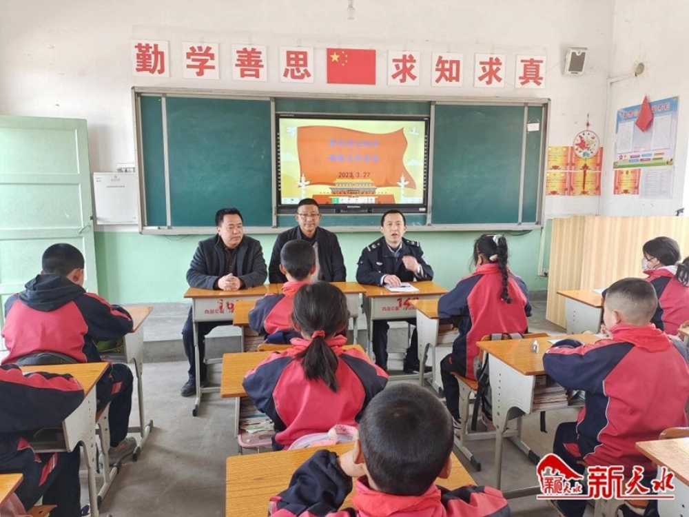 在教室里,县教育局、应急管理局、镇政府、司法所联合为同学们举办了一堂安全教育知识讲座。工作人员用通俗易懂的语言,结合实际案例向学生讲解交通安全、防溺水安全、用电及消防安全、防诈骗安全、饮食安全等方面的安全防护知识,并发放了科普、教育、安全知识宣传资料。