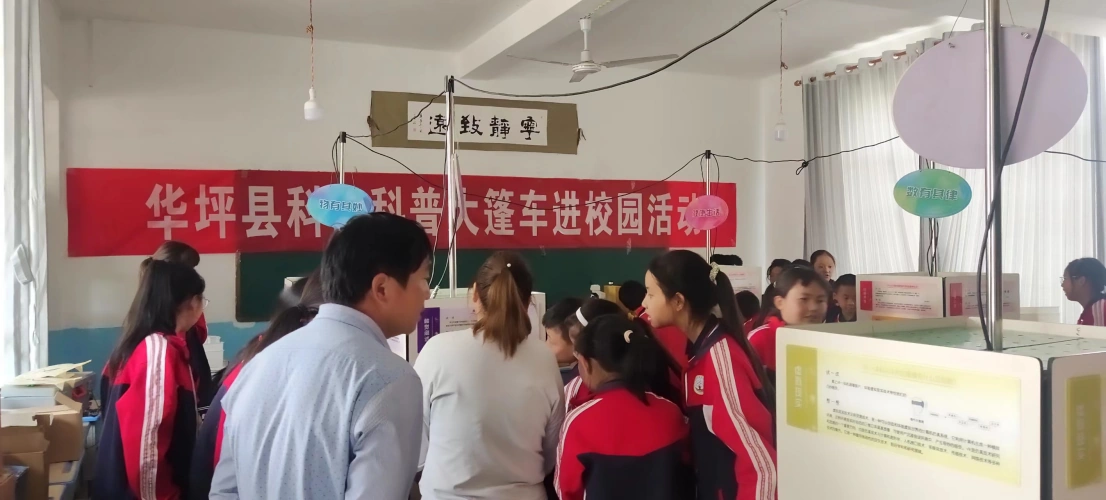 为了培养同学们勤动手、善动脑,爱科学、乐创造的科学素养和实践能力。3月27日,华坪县科协组织志科普愿服务队到荣将镇温泉村小学开展科普大篷车进校园活动。在科协志愿者的操作下一红一蓝两个机器人在激励人心的《少年》音乐中开始翩翩起舞,孩子们兴奋的笑声久久回荡在校园里,稚嫩的脸庞上展现出了对科学知识的渴求,深切感受到了科技的奇妙。活动还展出了6套科普仪器展品,涉及到物理学、光学、数学、电磁学及健康生活等多门学科知识。同学们井然有序参观,看着从未见过的新奇科技设施,时而锁眉、时而大笑,短短的几分钟、之前还寂静无比的操场顿时沸腾起来。