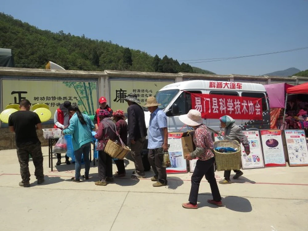 云南省易门县科普大篷车走进乡村开展“科普惠农、民族团结”宣传活动