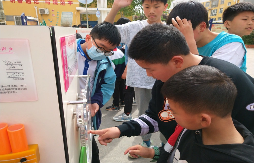 活动现场,同学们有序参观科普大篷车展出的双曲狭缝、锥体上滚、伯努利星环等多种科技展品,给他们提供了一个与科学面对面交流、零距离接触的机会,更是丰富了他们的科学知识,拓展了他们的科技视野。活动中,科技老师生动的讲解及认真熟练的实践操作,使参加科技游园活动的学生们不仅感受到科技的魅力,也在寓教于乐中启迪他们的科学思维,为他们的科技梦想奠定了基础。最后,科技老师给同学们发放了科普宣传册500余份,促使同学们走进科学、了解科普。