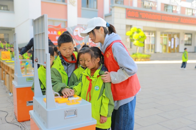 科普体验现场展示了机器人表演、水力发电、尖端放电、瞬间制冰、手眼协调、对镜画五角星等十余项富有科普性、趣味性的展品教具,大大激发了同学们的好奇心,同学们纷纷驻足, 科普志愿者和老师们细致讲解,手把手教学生如何操作科普仪器,亲身体会科技的神奇魅力,认真观察现象,细心研究原理,在快乐中汲取着科学知识的营养。