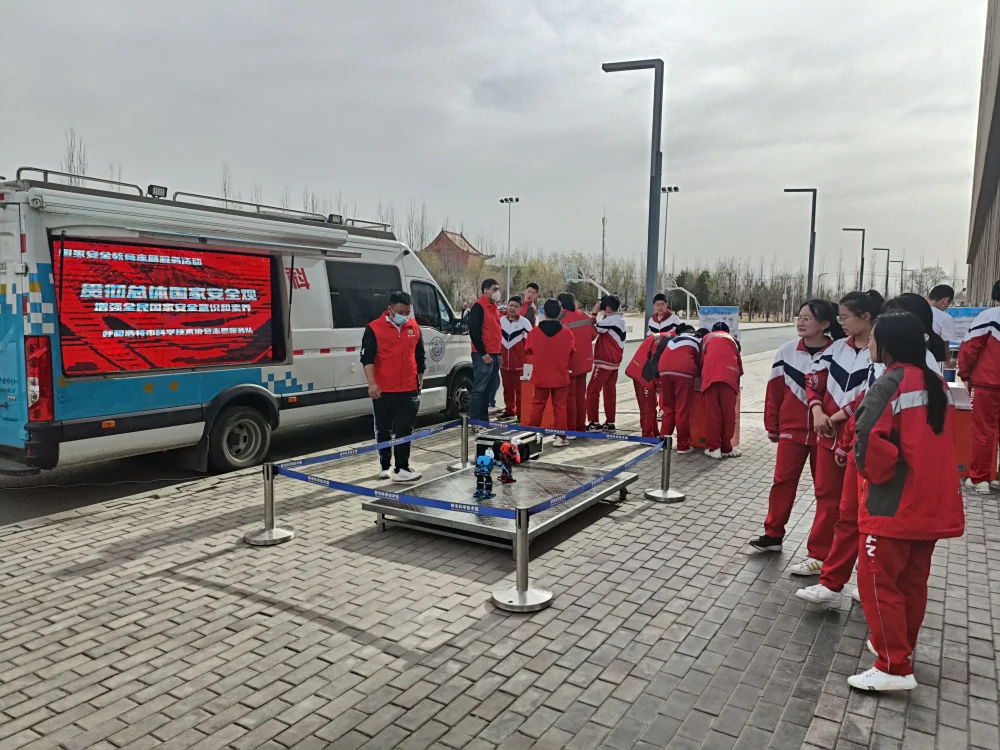 校园里,志愿者们将琳琅满目的车载展品一一摆放,并为同学们讲解原理示范用法,将声、光、电等科学知识绘声绘色地通过展品传授。现场的跳舞机器人随着音乐动感地舞动起来,为活动增添了趣味性,吸引了同学们驻足活动现场,观看表演的同时学习了国家安全相关知识,建立了国家安全意识。