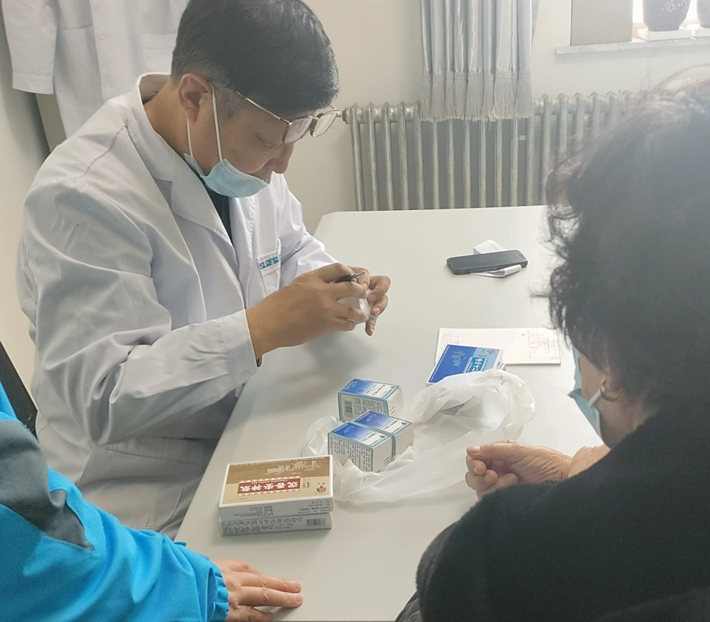 义诊现场,前来就诊的居民井然有序的排队等候专家义诊。医务人员根据每位居民的个人身体情况给出合理建议,对于有病史的老人,医生还会提醒老人按时用药,并为其普及健康知识,提高居民自我健康监测的意识。