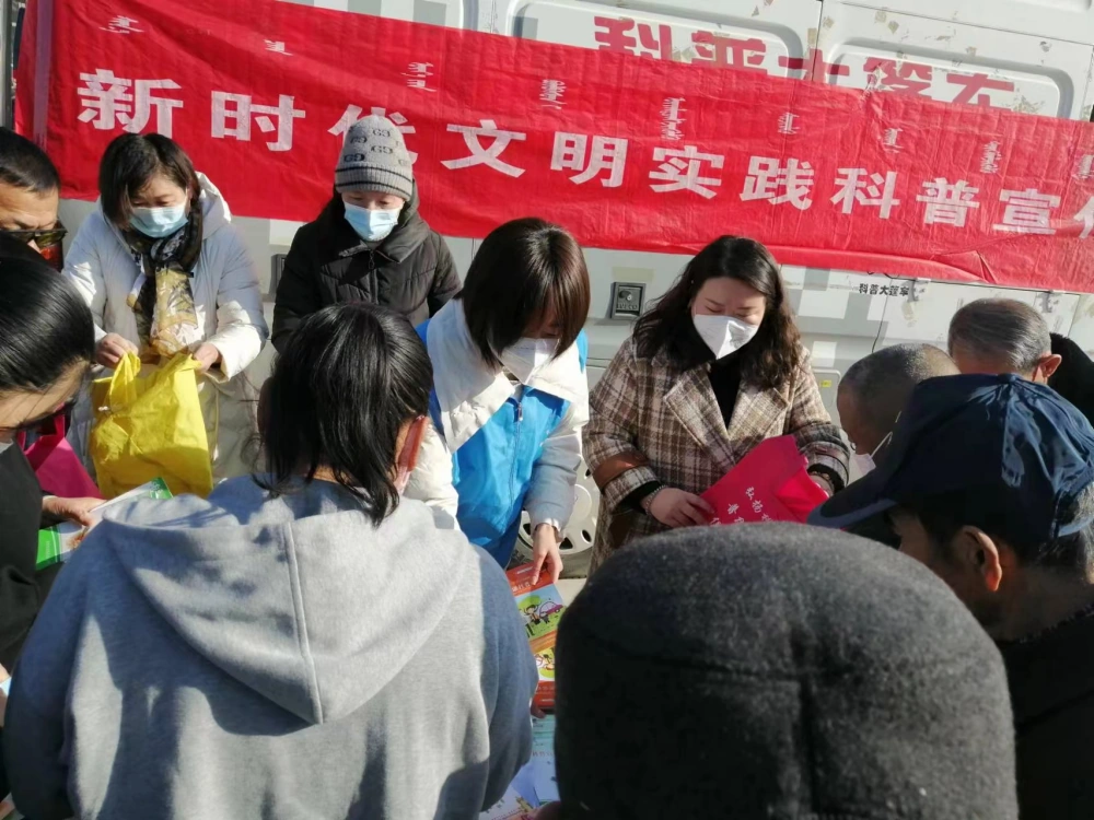 2月22日,2023年巴彦淖尔市文化科技卫生“三下乡”活动在临河区西客站南广场举行。临河区科协副主席杨建强、青少部部长王美君等科技工作人员等参加了此次活动。