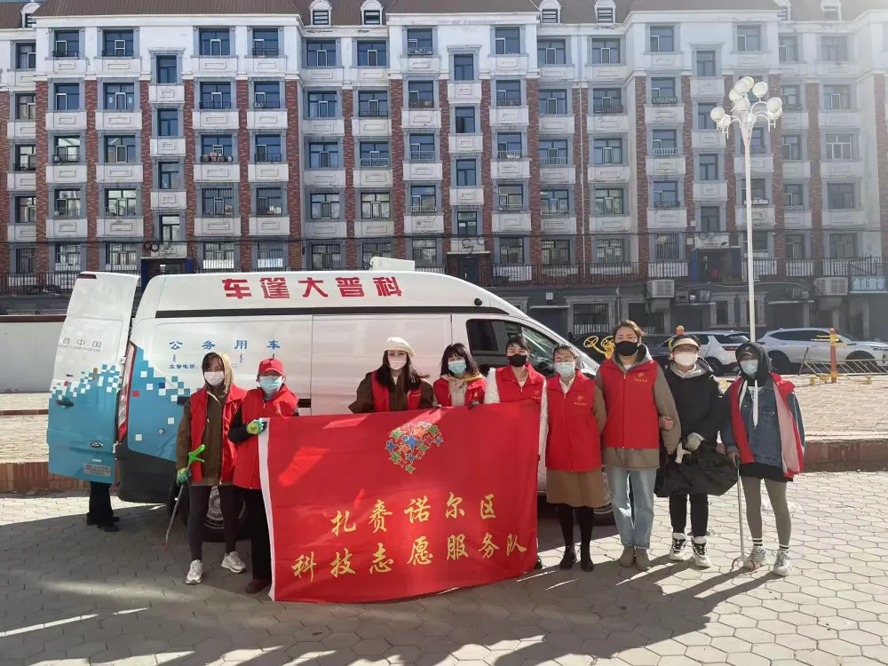 扎赉诺尔区科技志愿服务队开展积极参与文明城市创建活动,保护环境人人有责活动,对负责的辖区内垃圾、乱堆乱放杂物、乱贴乱花小广告等问题进行集中清扫和处理,并在小区宣传栏内张贴保护环境科普知识宣传图片,普及科学知识,保护自己居住环境, 全面提高居民科学文化素养。