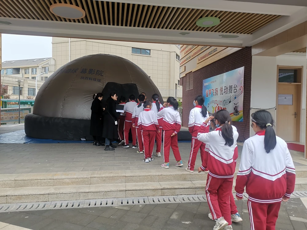 2023年4月4日,在陕西省第三十一届“科技之春”宣传月期间,陕西科技馆科普大篷车走进西安市长安区绿地城小学开展科普大篷车进校园巡展活动,为全校1200余名师生带来了车载展品、科普实验剧、球幕影院、仿人机器人表演等内容丰富的科普展项。