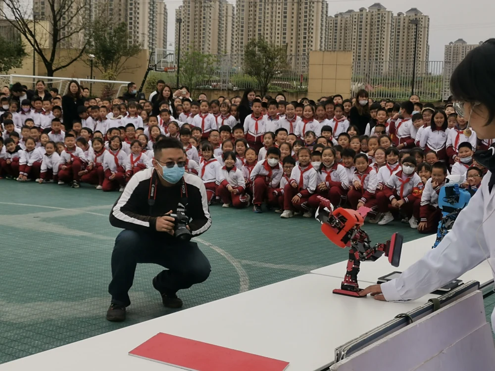 “龙洗”“梵天塔”“手续电池”作为最受欢迎的车载展品,展出时同学们都自觉地排起了长长队伍,等待着亲手操作一番。科学实验《眼见不为实》《一纸托人》《空气炮》让学生们纷纷踊跃参与互动。仿人机器人“小宁”“小萌”伴随着《我们都是追梦人》《青春修炼手册》等美妙音乐展示了动感舞蹈,在孩子们的惊呼声中,完成了一个又一个的高难度动作。球幕影院独特的视觉冲击、立体环绕声效带来强烈的沉浸感,让大家感受到犹如身临其境的体验。一时间,校园里人声鼎沸,热闹非凡。