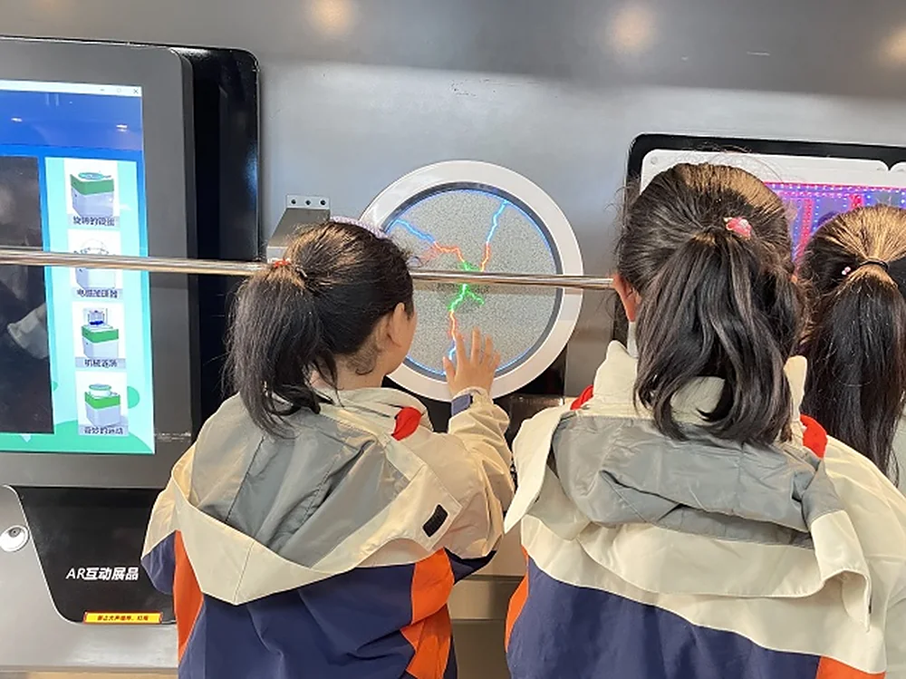 陕西科技馆新Ⅰ型、Ⅱ型科普大篷车带去了车载展品、球幕影院,以及科学实验、机器人和无人机表演等展项。丰富的车载展品吸引了孩子们的眼球,“魔箱”“手蓄电池”“短期记忆测试”等车载展品涉及声、光、电等各个方面。同学们兴致勃勃、争先恐后地动手操作展品,在“试一试”和“想一想”中尽享了一场“科技大餐”。 科学实验《声音看得见》《空气炮》《想象无处不在》《一纸托人》让学生们纷纷踊跃参与互动。仿人机器人“小宁”“小萌”伴随着《我们都是追梦人》《青春修炼手册》等美妙音乐展示了动感舞蹈,在孩子们的惊呼声中,完成了一个又一个的高难度动作。球幕影院独特的视觉冲击、立体环绕声效带来强烈的沉浸感,让大家感受到犹如身临其境的体验。一时间,校园里人声鼎沸,热闹非凡。