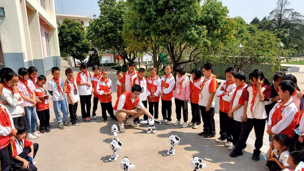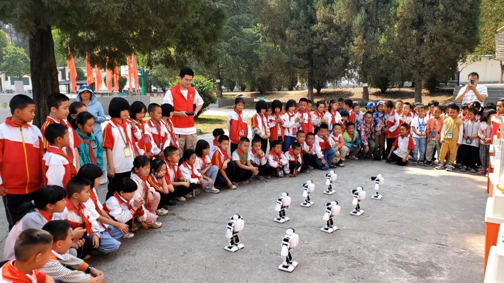 活动开始时,科技志愿者为同学们准备了一场机器人舞蹈表演,机器人整齐划一的舞蹈动作引起了同学们的阵阵惊叹,纷纷表示:“机器人表演实在太有趣了,真是大开眼界啊,希望科普大篷车能常来我们学校。”