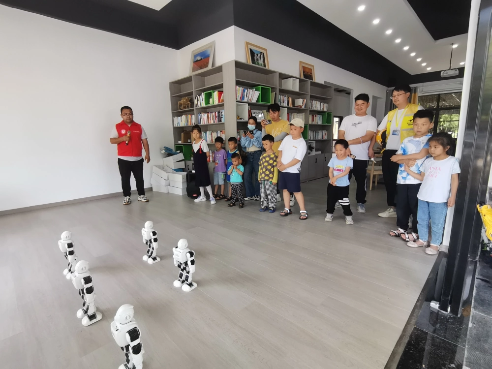 活动在4月22日下午14时开始,各代表及亲属早早来到了活动会场,在主持人的主持下,活动逐一开展。首先,由县科协的科普志愿者为大家送上精彩的机器人表演,机器人随着音乐的节奏,翩翩起舞,整齐划一的舞步,不时迎来孩子们阵阵欢呼。