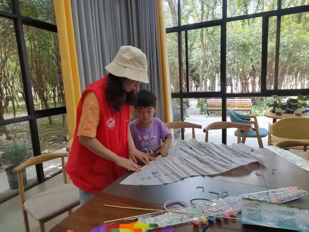 “孩子们,大家要注意这里,这里需要固定”,“孩子们这里需要用胶水黏牢”在工作人员的悉心指导下,一个个漂亮的风筝陆续的做好,孩子们和家长们脸上流露出满意的微笑。