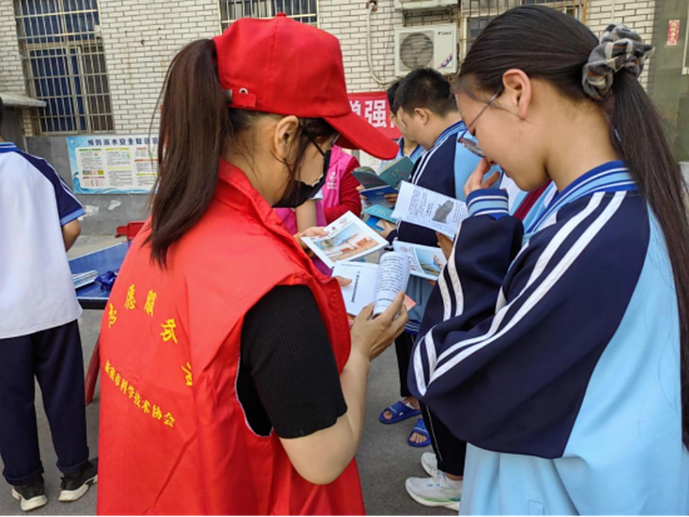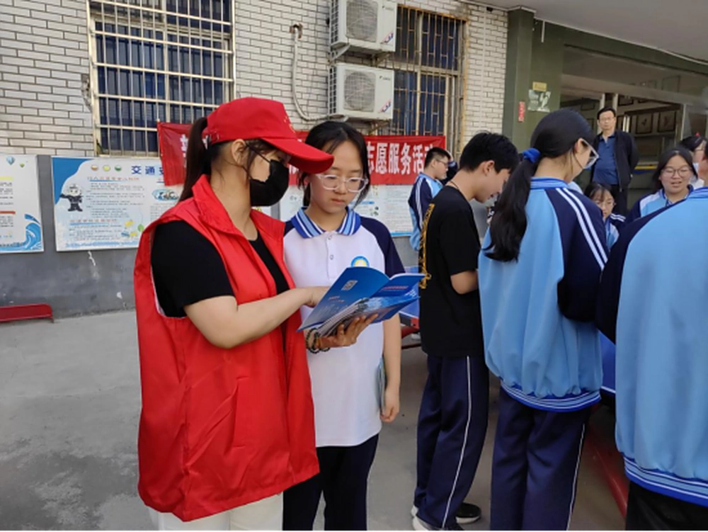 活动中,志愿者向学生一对一发放宣传页和科普手册,并对里面内容进行详细讲解什么是邪教、蚊子叮咬会传播传染病吗、电梯安全急救方法等知识,引起学生对科普手册内容的兴趣,引导大家安全健康文明的生活。